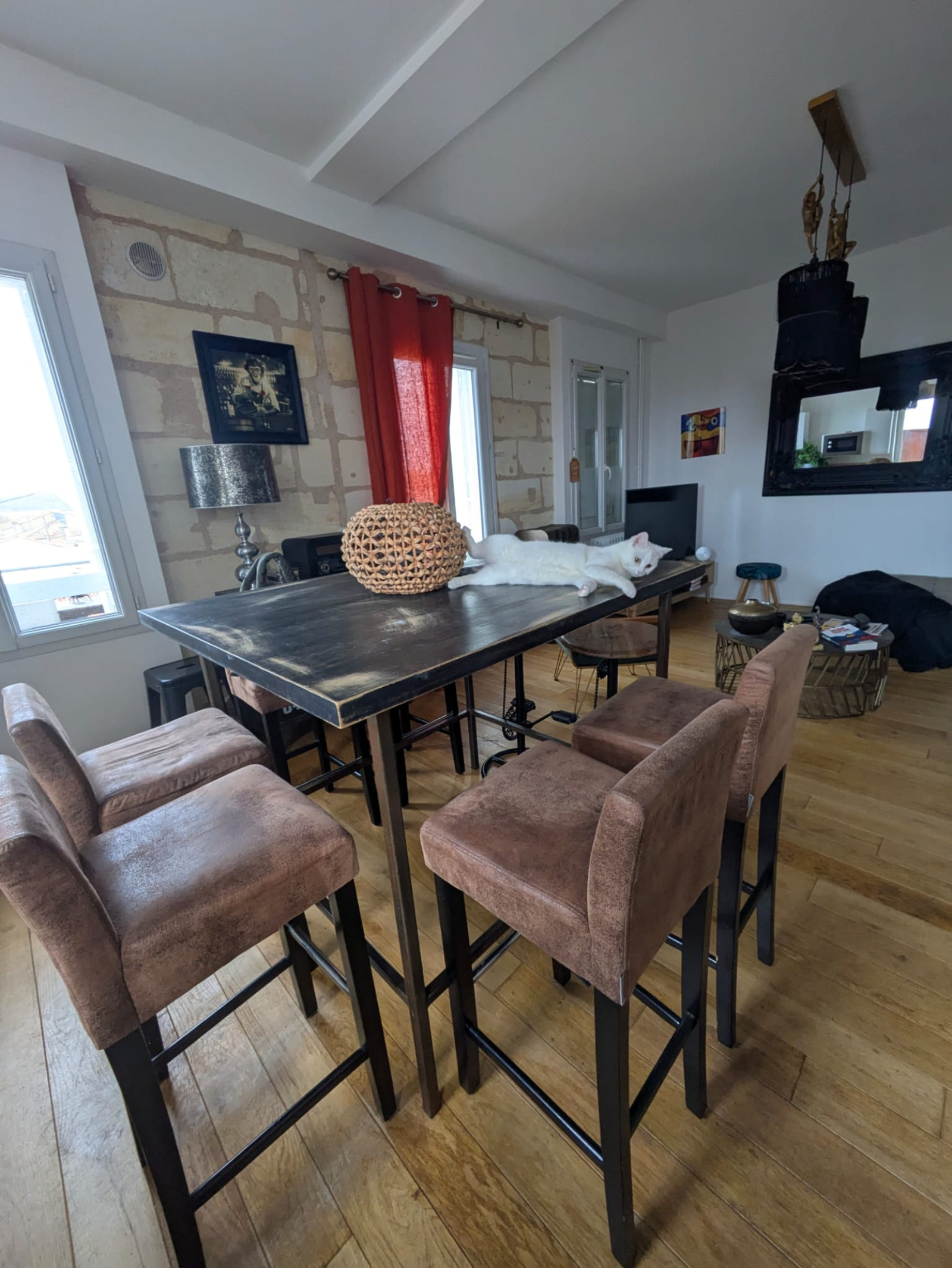 Au centre de Libourne, rue des 4 frères Robert, au sein d'un immeuble intégralement rénové, nous proposons au 2ème et dernier étage un appartement T3 bis traversant avec un extérieur. Le logement se compose d'un grand salon très claire avec une cuisine ouverte semi-équipée, de deux chambres, d'un bureau pouvant faire office de chambre d'appoint et d'une salle d'eau. Vous bénéficierez d'une jolie vue sur le vieux Libourne et son clocher depuis son balcon-terrasse de 9m² environ.