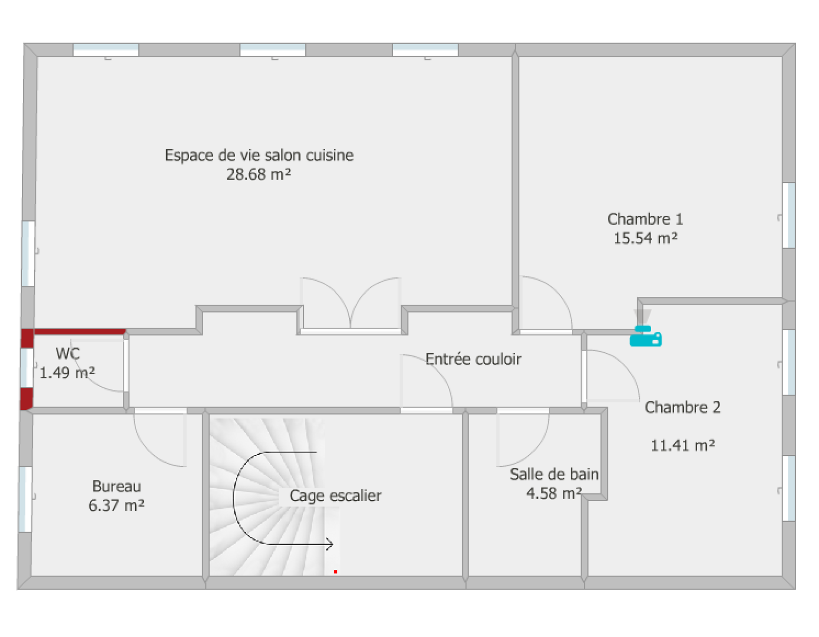 Loyer : 900.00€ CC (électricité des parties communes ; energies indiv.)