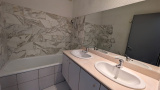 Ce logement se compose d'une entrée qui distribue le séjour très clair avec sa cuisine américaine. Nous trouvons 2 chambres avec placards et une salle de bains avec double vasque.