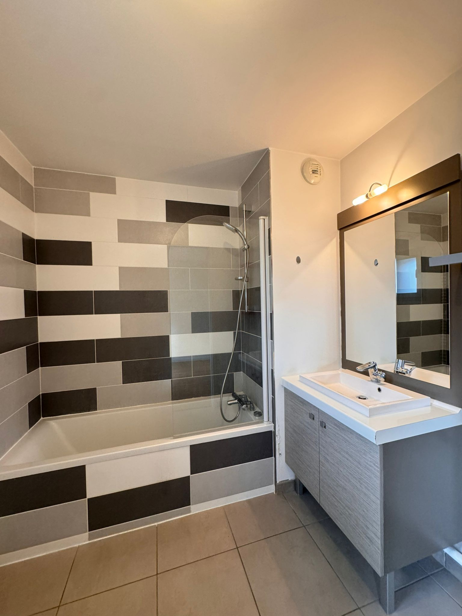Accessible par un ascenseur, l'appartement est très bien conçu et agréable à vivre: nous trouvons une entrée distribuant un pièce de vie lumineuse avec une cuisine aménagée ouverte qui borde la terrasse de plus de 10m2. Nous avons également beaucoup de rangements, un toilette indépendant et une grande chambre de près de 15m2 avec sa salle de bains attenante.