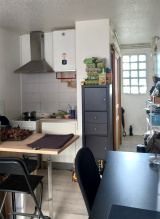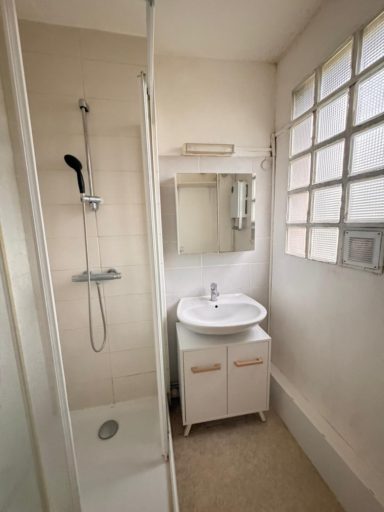 Au 1er étage de la résidence qui en compte deux et 19 copropriétaires, le logement comprend une entrée qui distribue la salle d'eau puis la pèce de vie avec sa cuisine ouverte. Le logement possède également un balcon agréable et une cave.