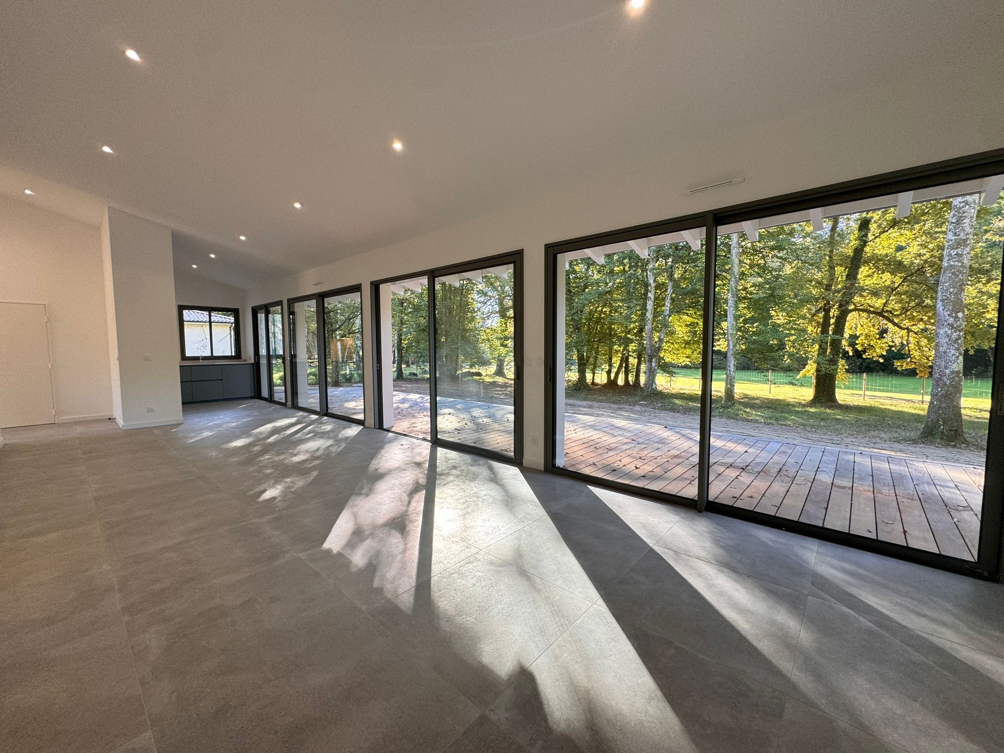 A l'orée du golf de Saint-Sulpice-et-Cameyrac, dans un environnement boisé et calme et pourtant à proximité des commodités, nous proposons à la vente une maison T4 de plain-pied idéale pour une famille. Située sur une parcelle de 3000m2, la maison construite en 2025 avec des matériaux de grande qualité offre une entrée avec vestiaire qui mène au séjour au Sud de plus de 38m2 ouvrant sur une belle terrasse abritée et sur la nature. La cuisine équipée semie ouverte est très bien conçue et en harmonie avec la pièce de vie. La partie nuit comprend une suite parentale à l'écart avec toilette particulier, salle de bains et dressing, quand les 2 autres chambres sont liées à une salle d'eau avec double vasque. L'ensemble des pièces d'eau sont équipées de mobiliers de la marque "Porcelanosa". La maison possède également une buanderie, un garage attenant avec une ouverture motorisée de sa porte et un chauffage par le sol avec un système de pompe à chaleur. Cette belle maison est à visiter sans tarder!