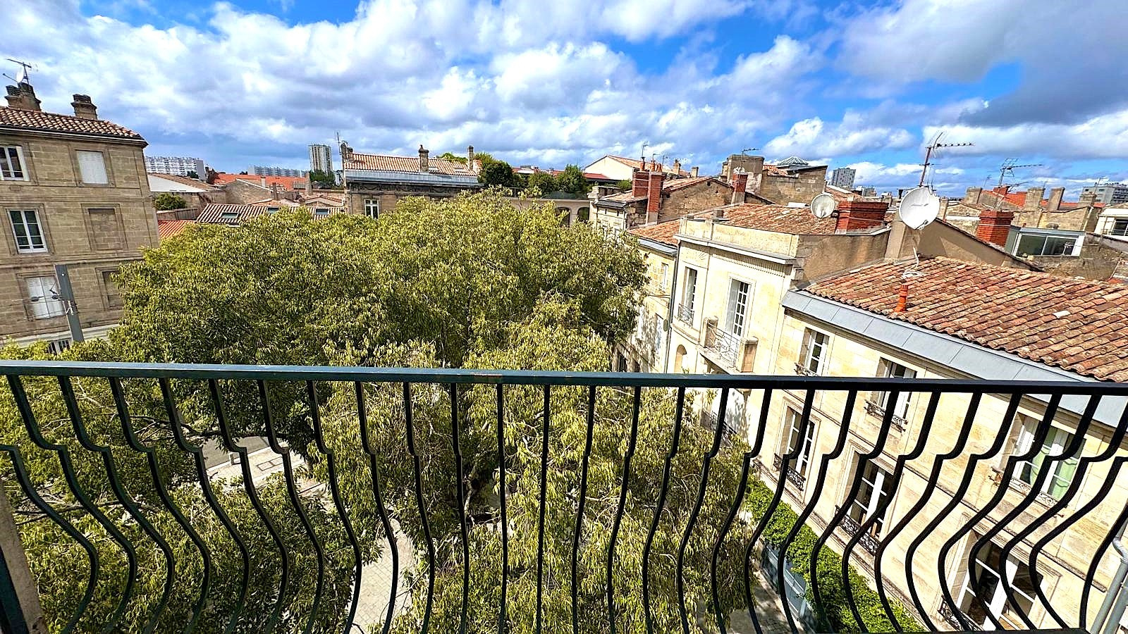 Quartier des Chartrons, à 2 pas des dynamiques cours Portal et Place Paul Doumer, au dernier étage d'un immeuble sur une charmante place, nous proposons un appartement traversant de près de 50m2 avec son balcon qui offre une vue dégagée.